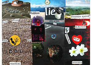 The collages were on show at The Tavistock Centre, 120 Belsize Lane, London NW3 5BA, weekdays from 8am-8pm until 9th March, 2017.