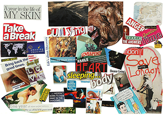There were a lot of new people in the day room today, and some people I expected to see were not there. Arthur came into the Art Room briefly to photograph his collage then left. Jake wasn’t around, but turned up later to finish his third collage. Kourtney was there. She was a bit impatient today. I kept saying to her ‘don’t stick things down until later’, and she kept saying OK, but then she stuck them down anyway, and later regretted it. She had to start again twice, but I think she was enjoying the process of sorting out how to make her collage. She chatted quite easily and seemed more comfortable in the group than she did last week. Moira came to the group again. She was quite quiet, but she did make one or two incisive comments. I’m a bit afraid to ask her anything about her work as she seems so private. I hope she is going to be willing to talk to me about her collage when it’s done. A young woman called Amy wandered into the room a bit before it was time for us to start. I told her she was too early and she said she would go and listen to her ipod for a while and come back. When she returned she seemed disorientated and took a while to settle. She wanted to wash her hands, then she wanted to go out for a smoke. Initially she had trouble remembering what she was doing, and I wasn’t sure she had understood, but once she started a collage she completed it quickly and briefly talked to me about it. Her explanations were sometimes logical and clear, although she did lose track of what she was talking about at times and went off on a tangent about pigeons. She mentioned drugs quite a bit. She seemed to be drifting and rather lost – I wondered if she would regain her sense of reality if she really comes off the drugs. Another new person was a young woman called Zaria. She was keen to talk about her own experiences of psychosis when I showed the photos from my previous work. She started collecting images for a collage, but I didn’t see what they were. There were also two men in the day room who came to try out the art group. A big guy called Paul was quite receptive and started a collage, although he said he was going to have to look at home for some of the images he needs. Another man called Harry joined us briefly, and listened to my introduction, but he said that the images I was showing didn’t make sense to him. He said that if he was to try to represent his depression it would be with an image of a dog pissing up a tree. I said that would be OK, and he looked a bit confused. He joined in some discussion and leafed through magazines for a while and then left. I had seen Steve in the corridor and he said yes when I asked if he was coming in to the art group, but he didn’t turn up. When I was leaving I saw him sitting in reception waiting to see the doctor looking very distressed and a bit tearful. I clumsily asked if he was OK, to which he said ‘not really’. I said ‘sorry’ and he said ‘that’s alright’. I felt like I had got that wrong. Its difficult to know how to express concern without seeming patronising or unhelpful.